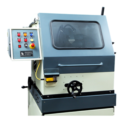 Stand mounted, medium capacity machine designed to meet the critical requirements of metallurgical parameters for cutting the sample burn less, with complete operator safety through enclosed structure and safety features