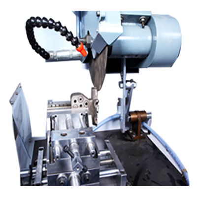Table top machine designed for cutting smaller cross-sections and with enclosed structure, coolant arrangement and refined control panel with safety features.