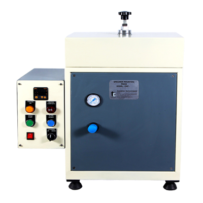 Automatic Specimen Mounting press is pneaumatically operated user friendly, automatically operated with rigid construction, with interchangeable mould capability and complete enclosed body.